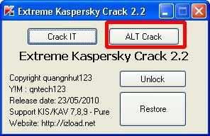 Phiên bản crack mới này cập nhật thêm chức năng ALT Crack có tác dụng khắc phục lỗi khi bạn bạn bấm nút Crack IT mà Kaspersky bị xung đột như bị treo, tự động thoát, ảnh hưởng làm ngắt mạng, .. ngăn chặn blacklist key.
